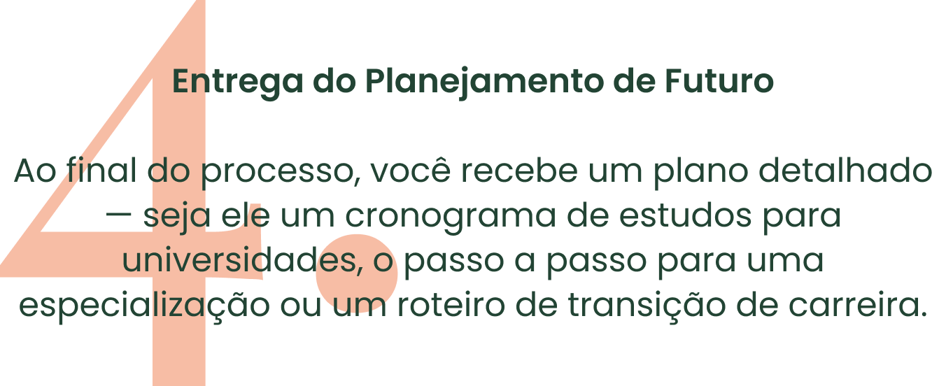 Oferecemos suporte para que a família lide com a ansiedade dos períodos de transição, construindo pontes seguras entre o momento de dúvida e o futuro profissional desejado.