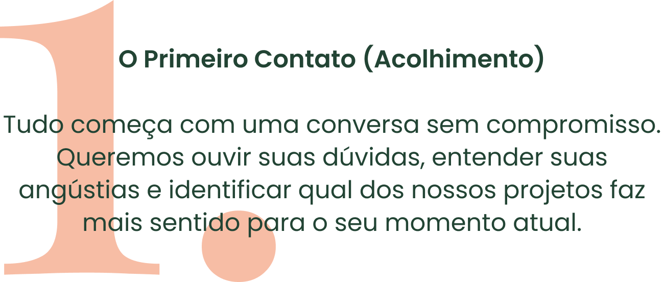 Nosso processo é desenhado para ser um refúgio de clareza em meio à agitação das grandes escolhas.