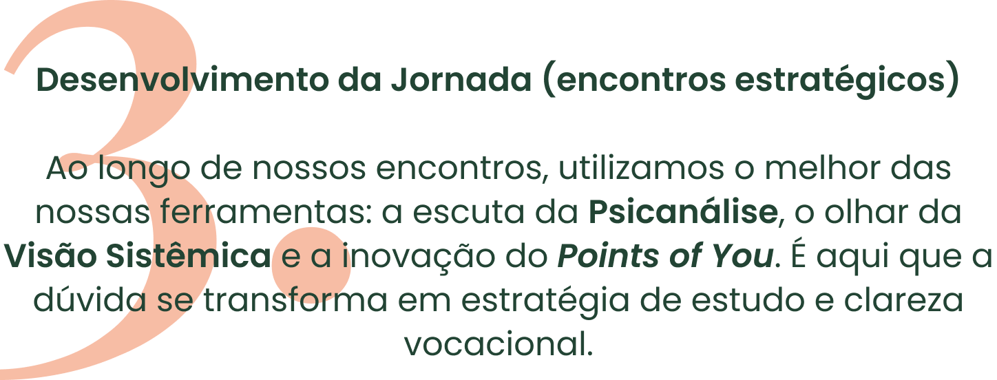 Aliamos ORIENTAÇÃO VOCACIONAL profunda com ESTRATÉGIAS DE ESTUDO personalizadas para que você conquiste sua aprovação e sua carreira sem abrir mão da sua SAÚDE MENTAL, transformando a pressão das grandes decisões em um percurso leve, seguro e com propósito.