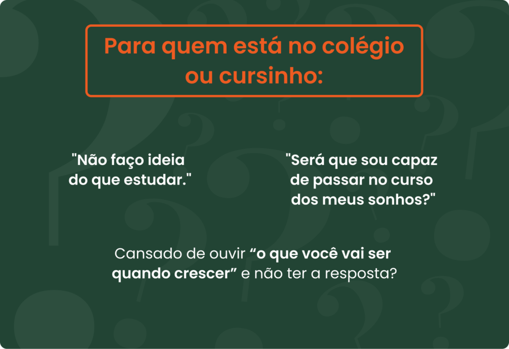 - Conexão real com o futuro: Organizamos visitas acompanhadas às universidades e entrevistas exclusivas com universitários e profissionais das áreas pretendidas. Queremos que você sinta o ambiente e tire suas dúvidas antes mesmo de entrar na sala de aula.